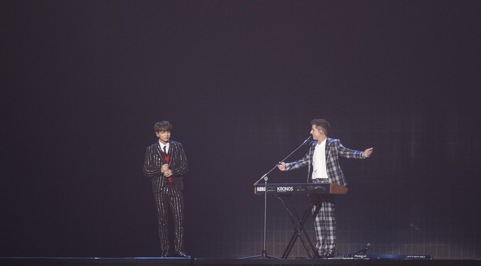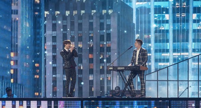 방탄소년단 정국과 찰리 푸스가 6일 오후 인천 남동구 남동체육관에서 열린 2018 MGA(MBC플러스 X 지니뮤직 어워드)에서 공연을 선보이고 있다.