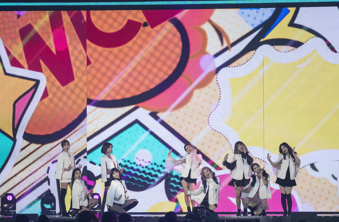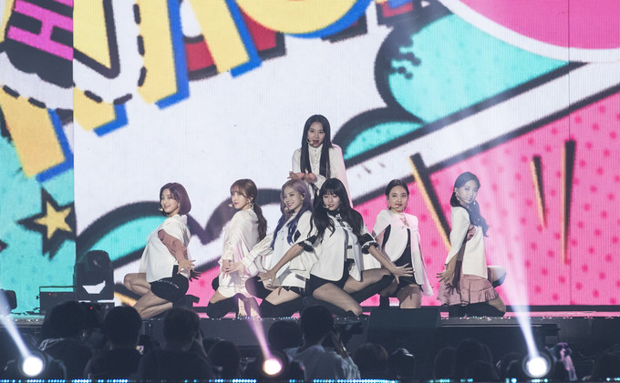그룹 트와이스가 6일 오후 인천 남동구 남동체육관에서 열린 2018 MGA(MBC플러스 X 지니뮤직 어워드)에서 공연을 선보이고 있다.