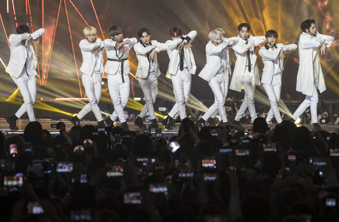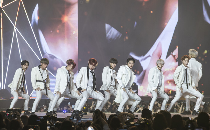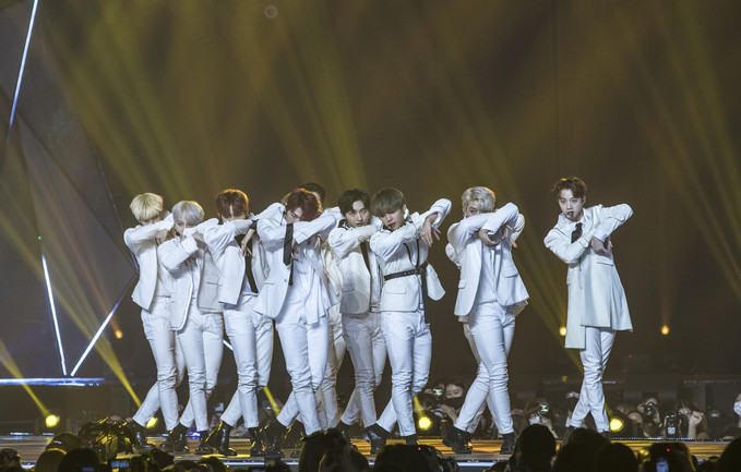 그룹 워너원이 6일 오후 인천 남동구 남동체육관에서 열린 2018 MGA(MBC플러스 X 지니뮤직 어워드)에서 공연을 선보이고 있다.