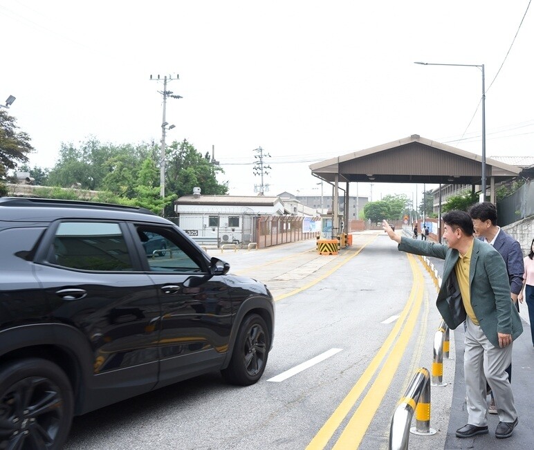 | ▲김동근 의정부시장이 2023년 7월 3일 캠프 레드 클라우드 통과도로 개통 직후 지나는 차량 운전자에서 손을 흔들어 인사하고 있다. [의정부시 제공] |