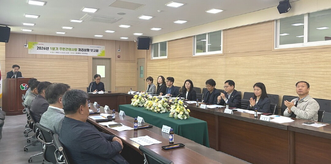 주민건의사항 처리상황 보고회는 분기마다 웅상지역 4개동 동장, 통장협의회 및 주민자치회 관계자 등이 참석해 주민 건의사항에 대한 진행 상황을 확인하고 향후 계획을 공유하는 자리다.