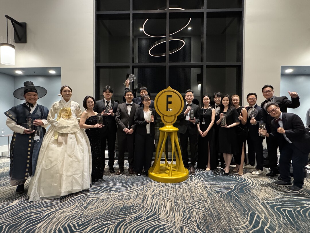 | ▲ 지난 16일 미국 플로리다주에서 열린 에디슨 어워즈에서 도의 지원을 받은 2024년 1기 선정 기업 '퍼스트랩'(FUST Lab)을 비롯한 수상기업들이 기념촬영을 하고 있다. [경기도 제공] |