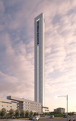 현대엘리베이터는 21일 오후 충주캠퍼스에서 250m에 달하는 국내 최고 높이의 아산타워 준공식을 열었다.