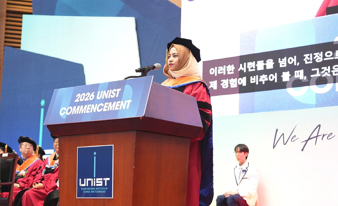울산에 위치한 연구중심 특수대학인 UNIST(울산과학기술원)는 지난달 23일 열린 '2026 학위수여식'에서 깊은 울림을 남긴 내·외국인 대표 졸업생 2명의 연설을 2일 소개했다.