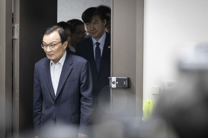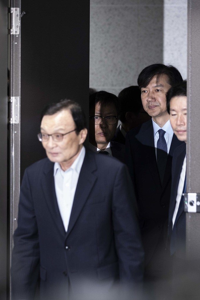 더불어민주당 이해찬 대표, 이인영 원내대표, 조국 법무부 장관이 18일 오전 서울 여의도 국회에서 열린 '사법개혁 및 법무개혁 당정협의'에 참석하고 있다.