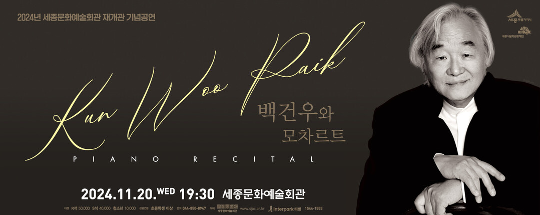 세종시문화관광재단은 11월 20일 세종문화예술회관 기획공연으로 '피아니스트 백건우 리사이틀'을 선보인다.