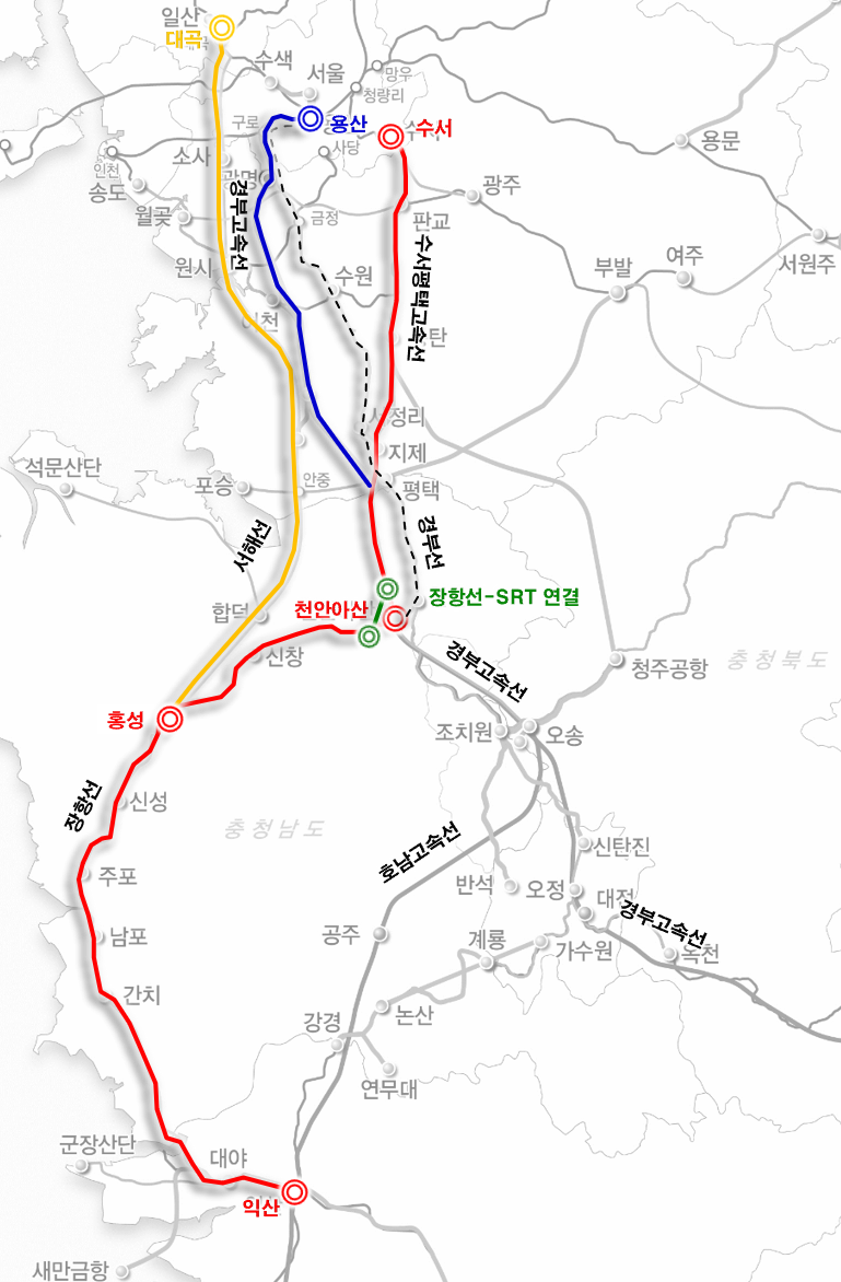 장항선-SRT 연결은 2027년 장항선 개량 및 복선전철화 사업 완료로 고속열차 운행이 가능하게 되는 시기에 맞춰 추진키로 했다.