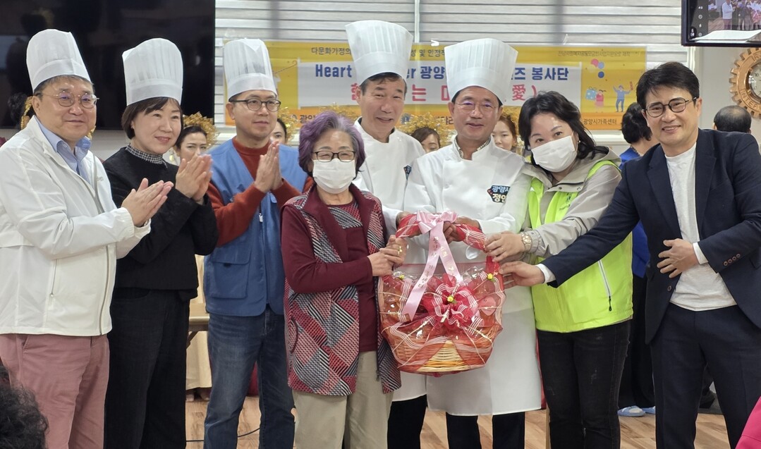 | ▲ 정인화 광양시장과 이승복 광양제철소 공정품질부소장 등 프렌즈 재능봉사단이 지난달 29일 치매 어르신들을 위한 빵을 선물한 뒤 기념촬영을 하고 있다. [광양제철소 제공] |