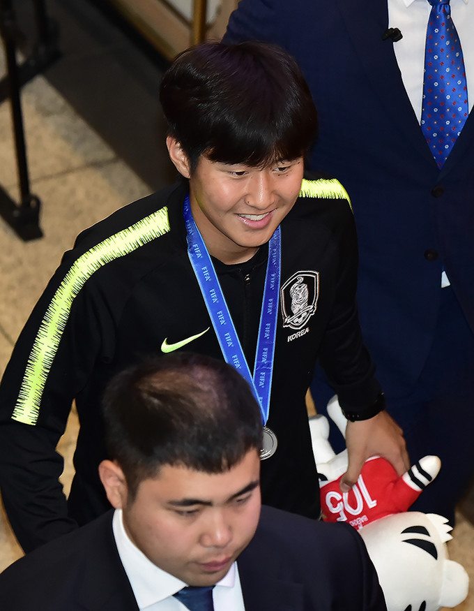 2019 FIFA U-20 월드컵 첫 준우승을 달성한 20세 이하 축구 국가대표팀 이강인이 17일 오전 인천국제공항으로 귀국하고 있다.