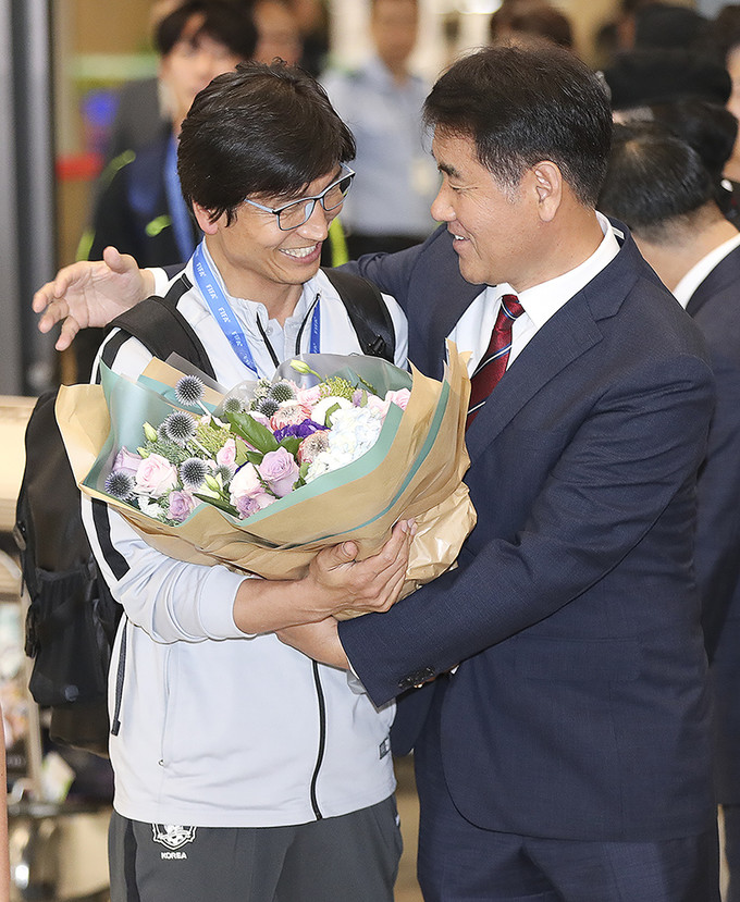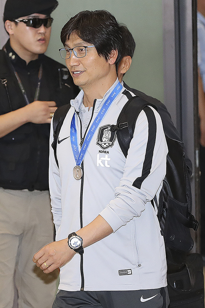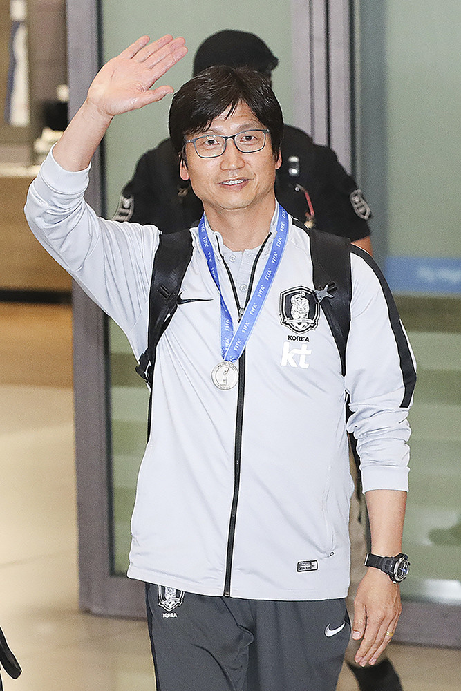 2019 FIFA U-20 월드컵 첫 준우승을 달성한 정정용 감독이 17일 오전 인천공항을 통해 귀국하고 있다.