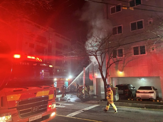 | ▲서산 다가구주택 화재 진화 모습.[서산소방서 제공] |