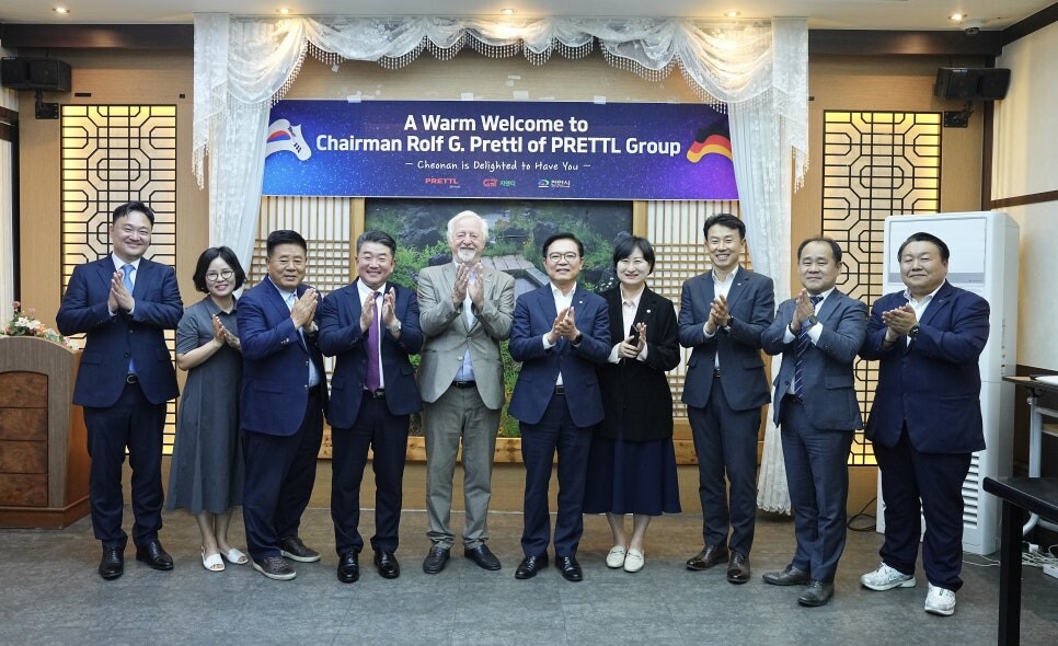 | ▲ 지난 11일 천안시에서 만난 독일 프레틀그룹과 지앤티 관계자들. [천안시 제공] |