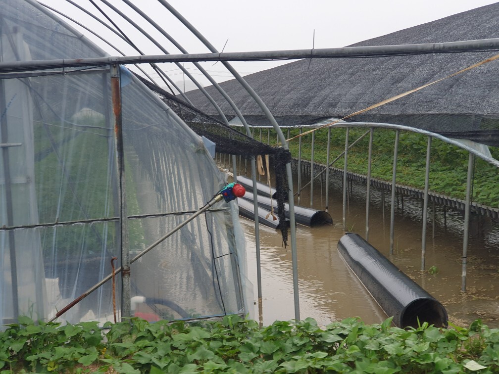 | ▲침수피해를 입은 딸기재배농장.[충남도 제공] |