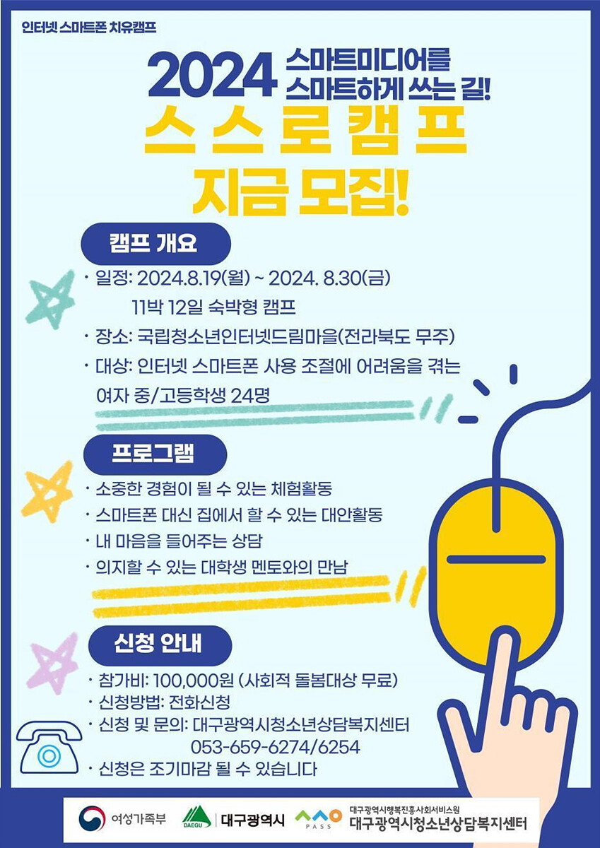 | ▲인터넷 스마트폰 치유 캠프 모집 안내문.[대구시 제공] |