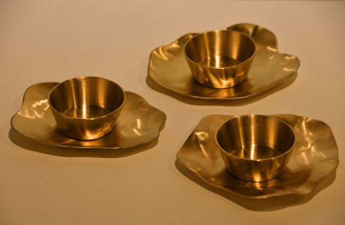 | ▲이광석 방짜유기장이 만든 찻잔 세트.[당진시 제공] |