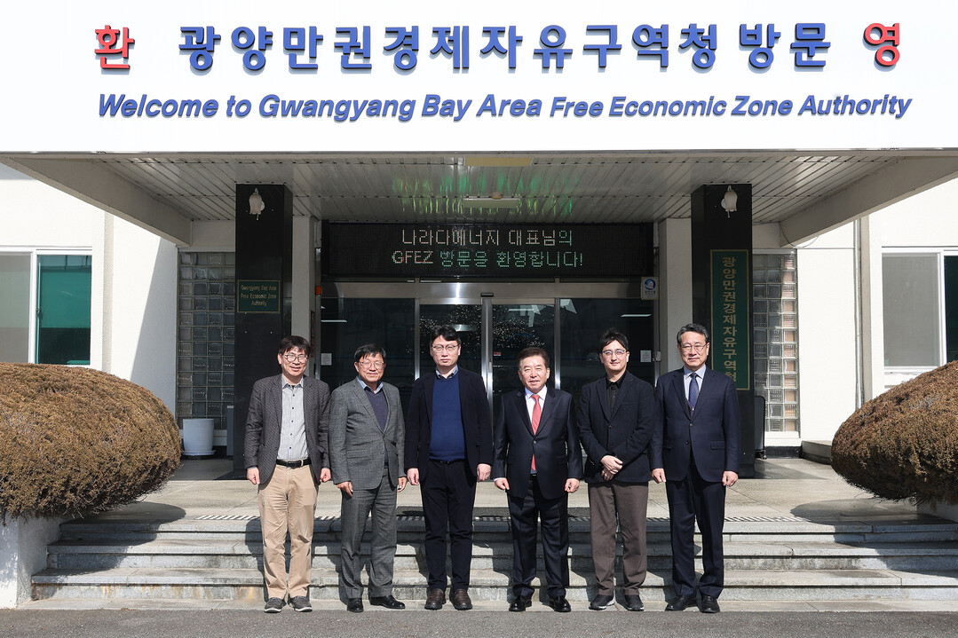 광양만권경제자유구역청이 지난 11일 나라다에너지 한국법인 박송철 대표를 초청해 율촌산단내 컨테이너형 에너지저장장치 투자계획을 협의했다.