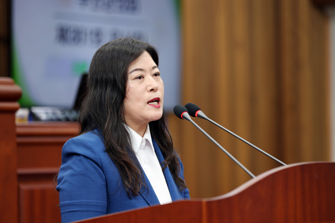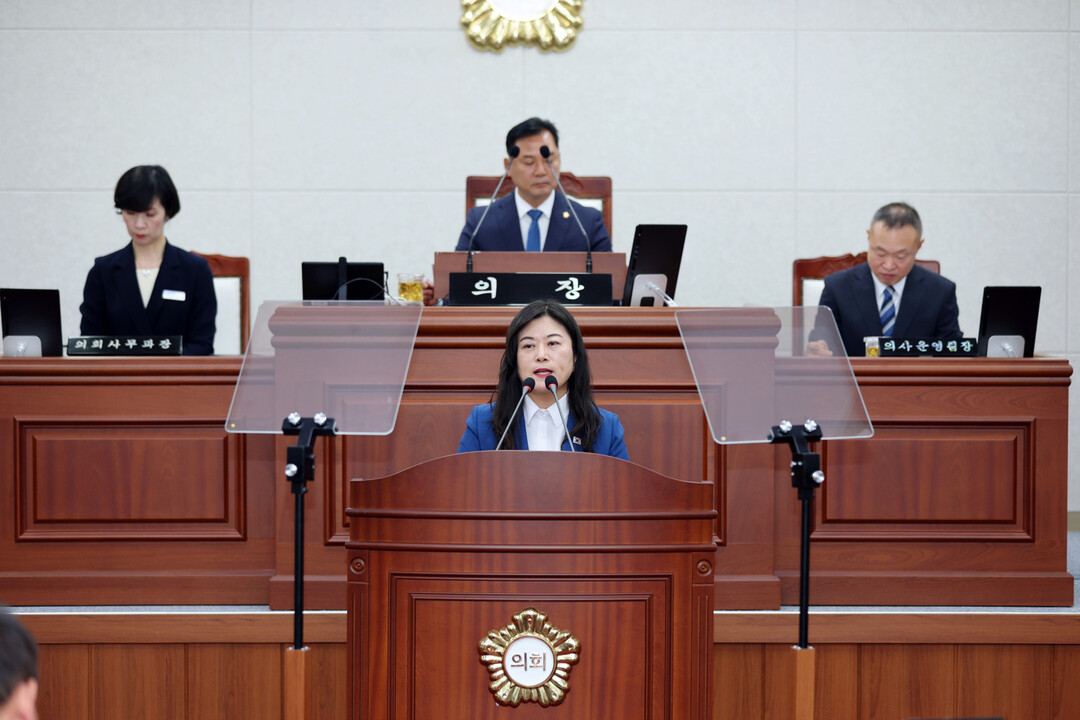 | ▲ 무안군의회 정은경 의원이 지난 13일 열린 제301회 임시회에서 5분 발언을 통해 주요 관광지 부활을 위해서'꽃을 통한 노후 관광지 재생 방안'을 제안하고 있다. [무안군의회 제공] |