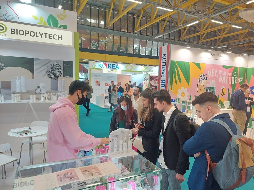 | ▲지난해 동남아시장 공략을 위해 부스를 열고 바이어들과 상담하는 충북 청주의 화장품업체 바이오폴리텍.[UPI뉴스 DB] |