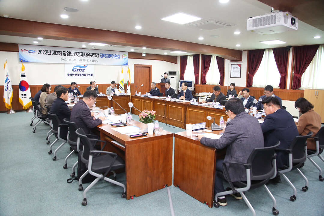광양만권경제자유구역청은 지난 23일 투자와 개발 분야의 자문위원들과 함께 ‘2023년 제2회 정책자문위원회’를 개최했다.