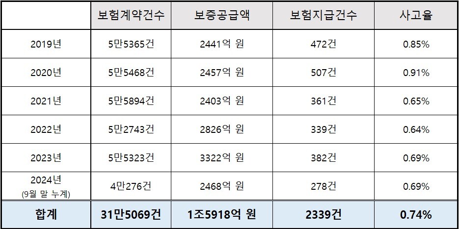 보증수수료는 계약자 신용도 등에 따라 다른데, 자영업자는 통상 3.5% 내외다. 올해 기준으로 1건당 평균 보증금액은 612만 원이다. 가입자 1명이 평균적으로 연 21만~22만 원의 수수료, 즉 보증상품 보험료를 납부하는 셈이다.