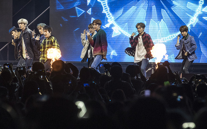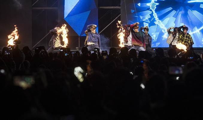 엑소가 27일 오후 서울광장에서 열린 '2018 코리아 세일 페스타(Korea Sale FESTA) 전야제'에서 공연을 하고 있다. 한국판 블랙프라이데이 '코리아 세일 페스타 2018'은 28일부터 10월 7일까지 열흘간 펼쳐지며 주요 백화점과 대형마트, 온라인쇼핑몰, 유명 온·오프라인의 유통 제조 서비스사들이 참여해 대규모 할인 행사를 진행한다.