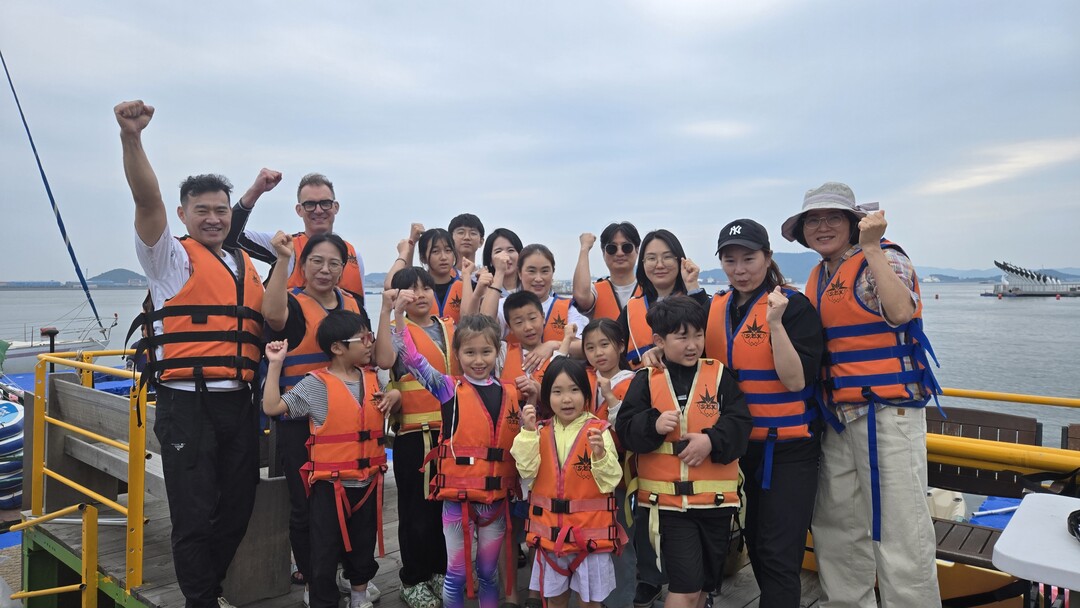 | ▲ 전남 목포서산초등학교가 지난 24일 평화광장에서 해양안전의식을 높이고 세대 간 소통을 촉진하기 위한 '해양소년단 가족체험데이'를 열고, 학생과 학부모가 함께 카약, 제트스키 등 다양한 해양레포츠를 체험한 뒤 기념촬영을 하고 있다. [목포서산초 제공] |