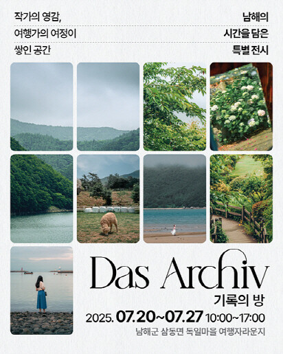 경남 남해군 독일마을 광장 여행라운지에서 '기록의 방'(Das Archiv, 기록보관소) 기획전시가 오는 20일부터 27일까지 일주일 동안 열린다.