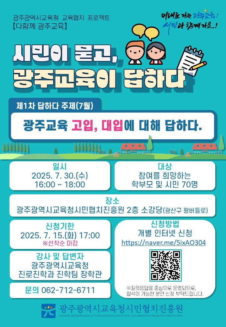 | ▲ 광주시교육청시민협치진흥원, 시민이 묻고 광주교육이 답하다 포스터 [광주시교육청 제공] |