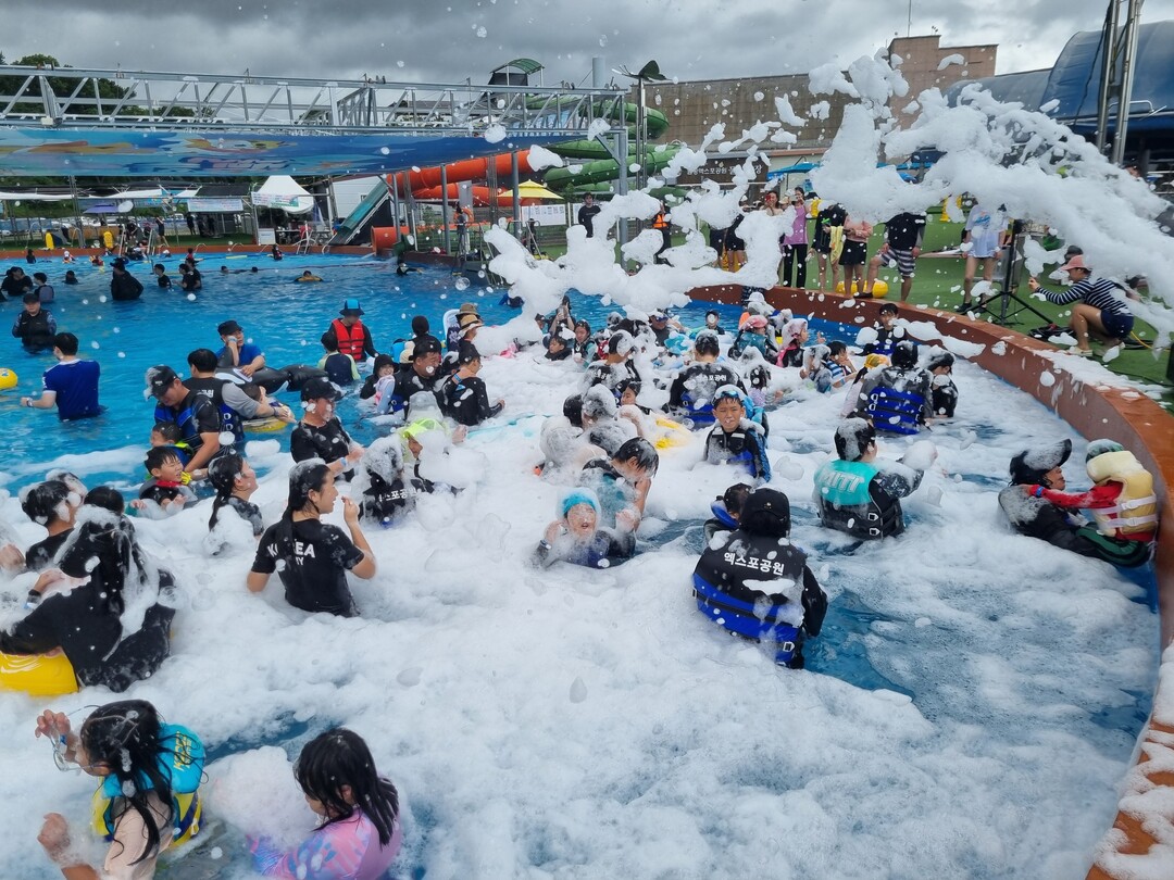 | ▲ 지난 22일 전남 함평 엑스포공원 물놀이장에서 열린 '2025 물놀이 페스타'에 수많은 인파가 몰려 물세례와 EDM 버블파티를 즐기며 한여름의 열기를 식히고 있다. [함평군 제공] |