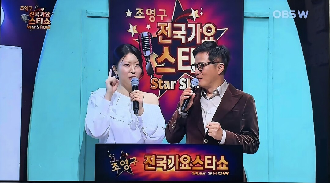 | ▲ MC 조은님·조영구가 OBSW '전국가요스타쇼'를 진행하고 있다. [조은님 제공] |