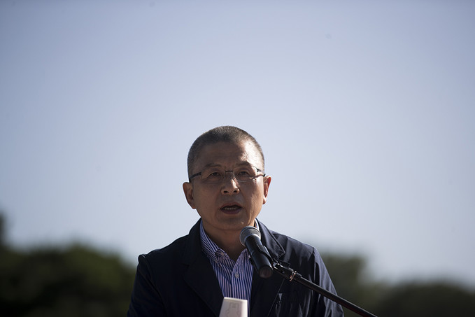 김무성 자유한국당 의원이 18일 오전 서울 종로구 청와대 분수대 앞에서 열린 최고위원-중진의원 연석회의에서 모두발언을 하고 있다.