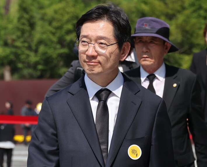 | ▲ 김경수 전 경남지사가 지난 5월 23일 경남 김해 봉하마을에서 열린 고 노무현 전 대통령 15주기 추도식에 참석해 이동하고 있다. [뉴시스] |