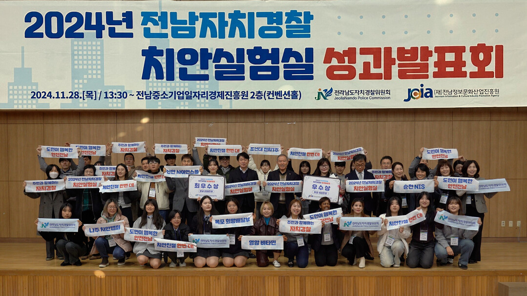 전남도자치경찰위원회는 지난달 28일 전남중소기업일자리경제진흥원에서 도민연구반 6팀 등 60명이 참석한 가운데 치안실험실 성과발표회와 시상식을 진행했다.
