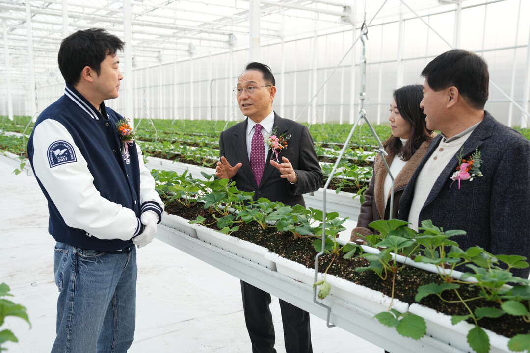 이번에 개소한 스마트팜은 농업기술센터가 추진한 농촌지도 시범사업 중 하나로 수경재배를 할 수 있는 베드시설과 복합환경제어시스템, 양액공급기, 냉난방온풍기 등이 설치됐다.