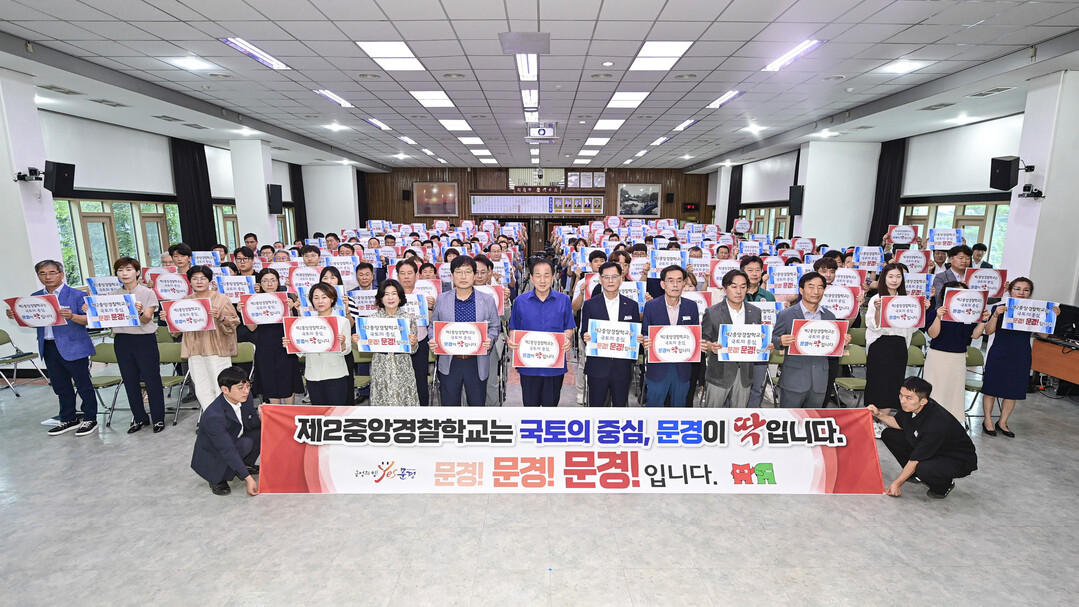 문경시는 최근 시민 등 300여명이 참석한 가운데 문경시청 대회의실에서 시민들의 간절한 마음을 담아 제2중앙경찰학교 문경 유치 염원 퍼포먼스를 전개했다.