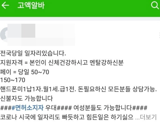 | ▲ B씨 일당이 SNS를 통해 올린 고액 아르바이트 모집 광고 [부산경찰청 제공] |