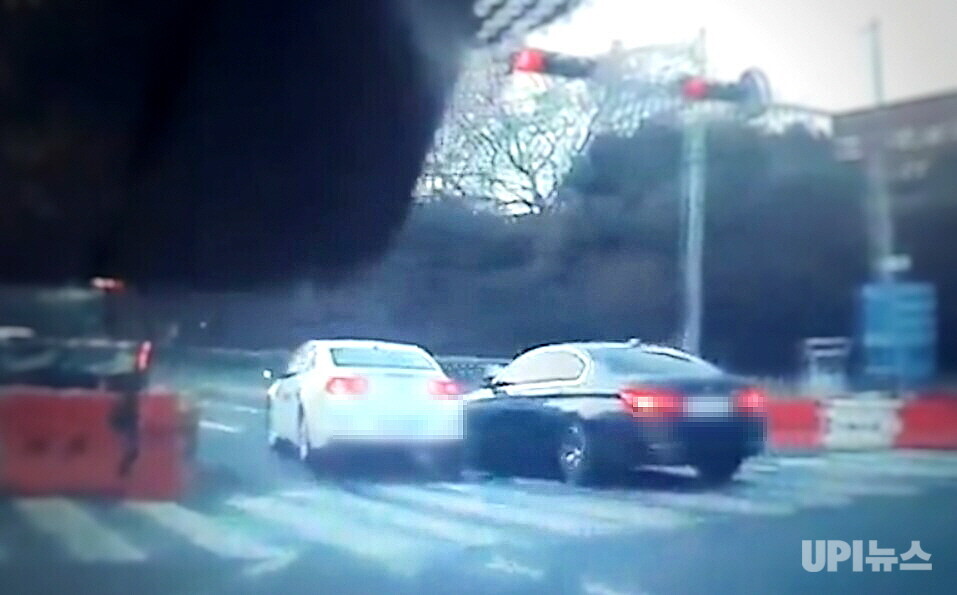 | ▲ 보험사기단이 1월께 부산 사하구 교차로에서 신호위반 차량을 일부러 들이받은 사고 현장 모습 [부산경찰청 제공] |