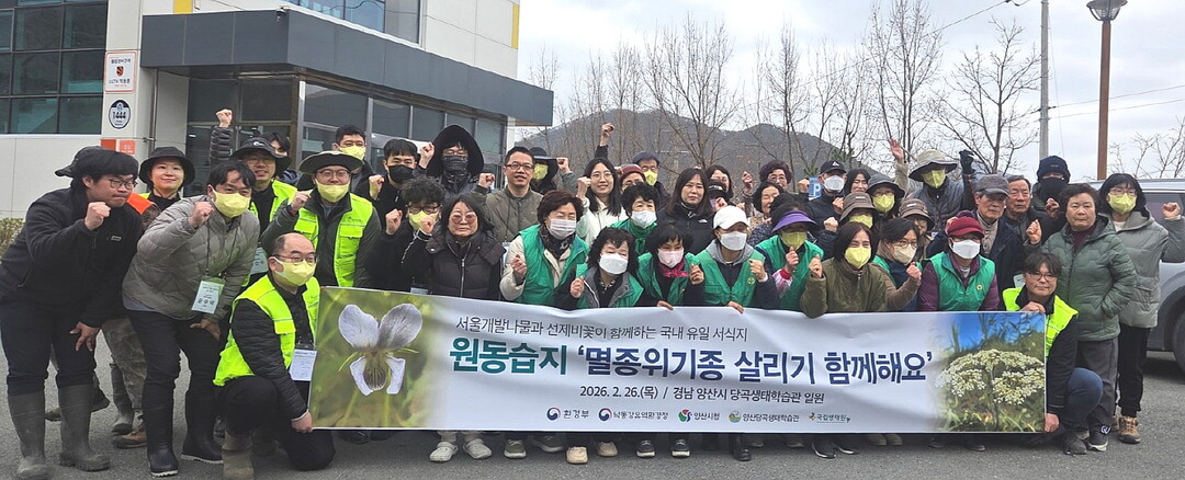 양산시는 26일 당곡천 원동습지에서 낙동강유역환경청, 국립생태원 등 관계기관과 원동면 새마을부녀회 등 70여 명이 참여한 가운데 멸종위기종 2급인 서울개발나물과 선제비꽃 서식지 보전 행사를 개최했다.