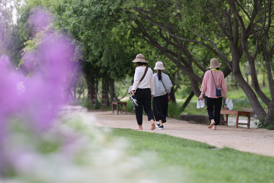 | ▲ 어싱을 하고 있는 관람객 [박람회조직위 제공] |