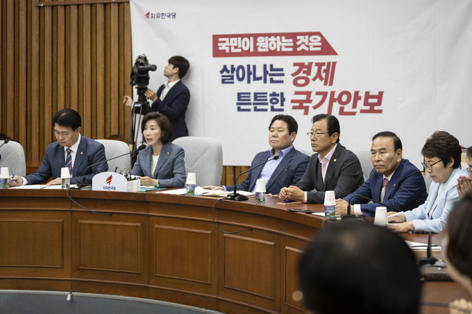 나경원 원내대표는 일본 정부가 반도체 소재 핵심품목에 대한 수출 규제에 나선 것과 관련 "대법원의 강제징용 배상판결 이후 8개월간 일본정부는 계속해서 통상 보복을 예고해 왔다. 이미 3월에는 보복조치에 대해 구체적으로 언급하기도 했다"며 "그럼에도 외교부는 최악의 사태가 벌어질 때까지 그저 방관하고 있었다"고 지적했다.