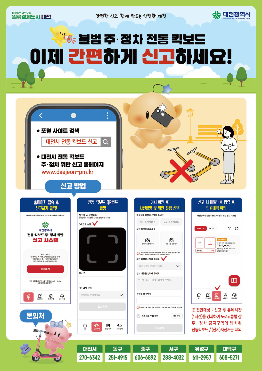 | ▲불법 주정차 전동킥보도 신고시스템 홍보물.[대전시 제공] |