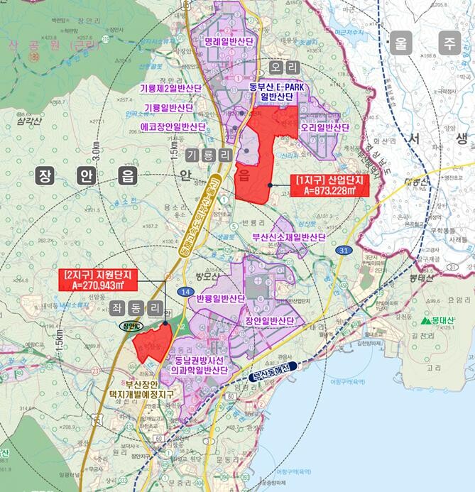 이에 따라 시는 이차전지, 전력반도체 등 산업용지 확보를 위한 신규 산단 '동부산이파크(2단계) 일반산단'을 기장군 장안읍 기룡리·오리·좌동리 일원에 약 114만㎡ 규모로 조성한다. 특히, 주거·교육·문화·상업시설이 어우러진 '지원단지'를 함께 조성, 산단 근로자의 직주락(職住樂) 자족형 생활 기반을 확충한다.