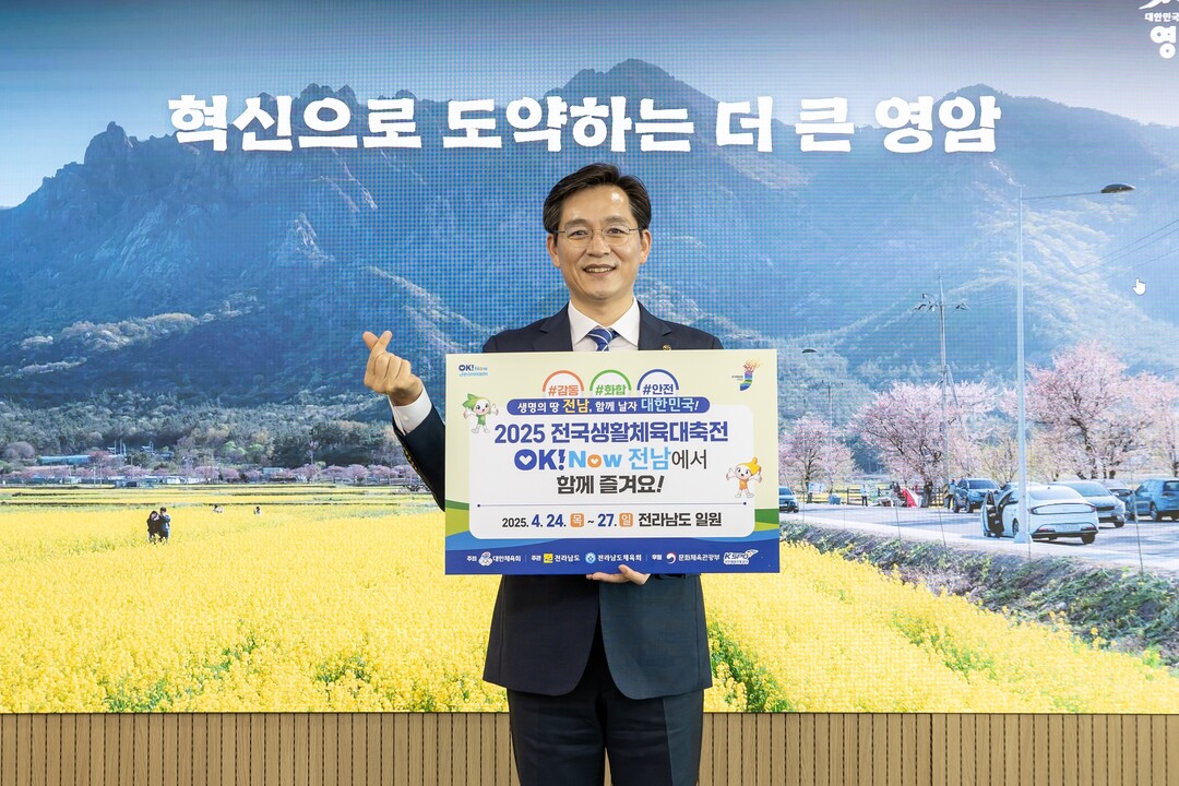 우승희 전남 영암군수가 '2025 전국생활체육대축전'의 성공개최를 염원하는 전남 시·군 단체장 릴레이 챌린지에 마지막 주자로 참여했다고 16일 밝혔다.