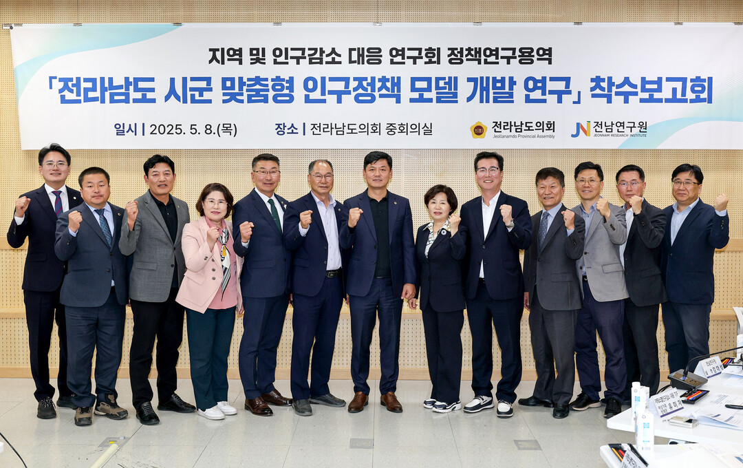 전라남도의회 지역 인구감소 대응 연구회가 8일 '전라남도 시군 맞춤형 인구정책 모델 개발 연구' 용역 착수보고회를 갖고 인구 소멸 해법 찾기에 나섰다.