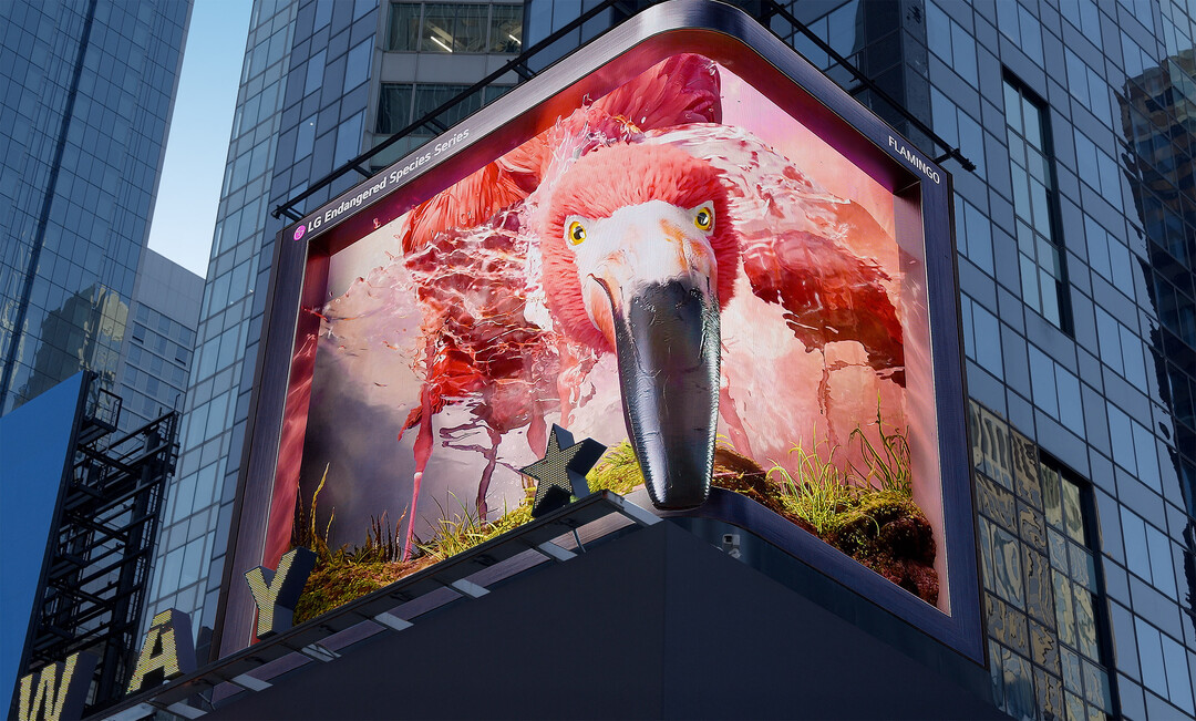 LG전자는 최근 미국 뉴욕 타임스스퀘어 전광판에 'LG와 함께하는 멸종위기종 보호 캠페인'의 9번째 영상 '플라밍고' 편을 공개했다.