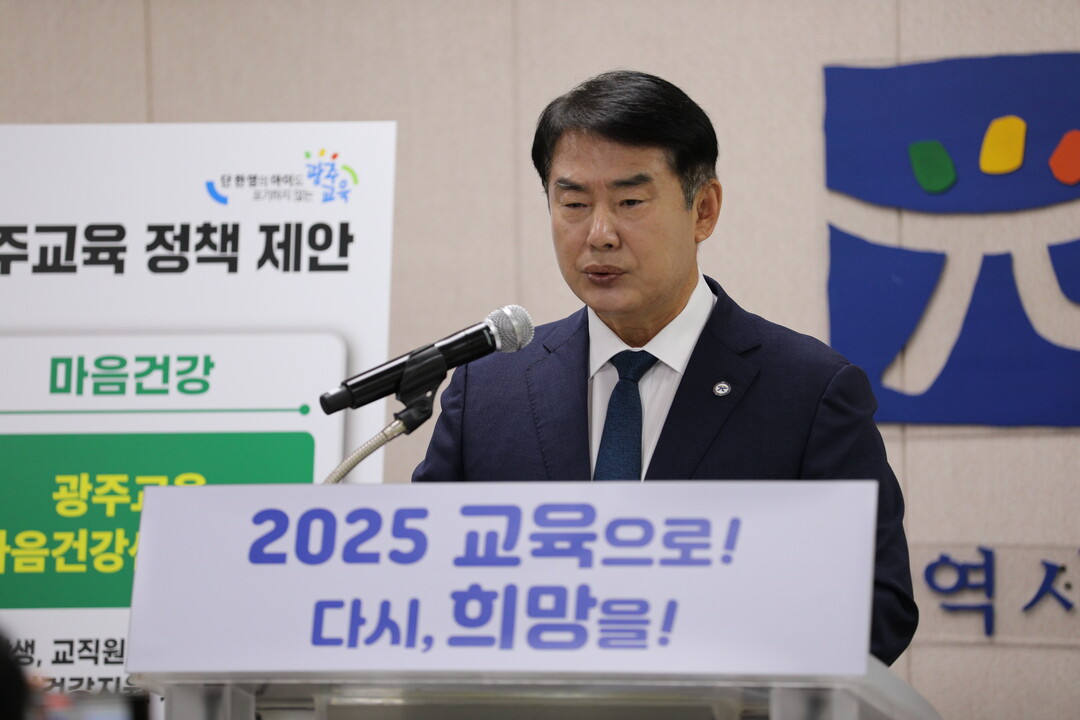 | ▲ 이정선 광주광역시교육감이 23일 광주시교육청에서 제21대 대통령선거 출마 후보자에게 광주교육 정책 제안을 하고 있다. [강성명 기자] |