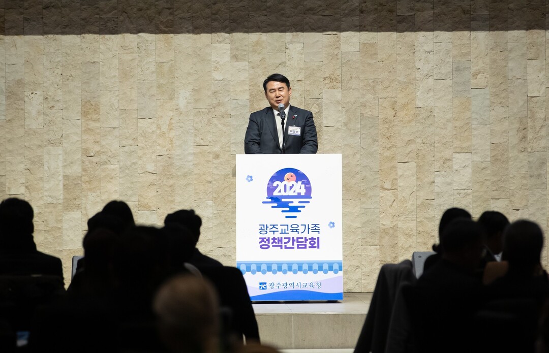 | ▲ 이정선 광주시교육감이 2024 광주교육가족 정책간담회에서 인사말을 하고 있다. [광주시교육청 제공] |