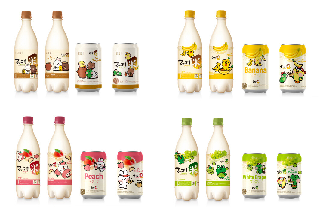 일본에 수출하는 라인프렌즈 캐릭터 막걸리는 국순당 쌀막걸리, 국순당 쌀바나나, 국순당 쌀복숭아, 국순당 쌀청포도 4개 브랜드다. 각각 패트와 캔으로 총 8개 품목이 출시된다.