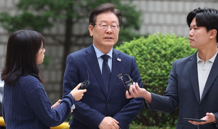 | ▲ 더불어민주당 이재명 대표가 15일 서울 서초구 서울중앙지방법원에서 열린 '대장동 배임 및 성남FC 뇌물 의혹' 관련 공판에 출석하며 취재진 질문에 답하고 있다. [뉴시스] |
