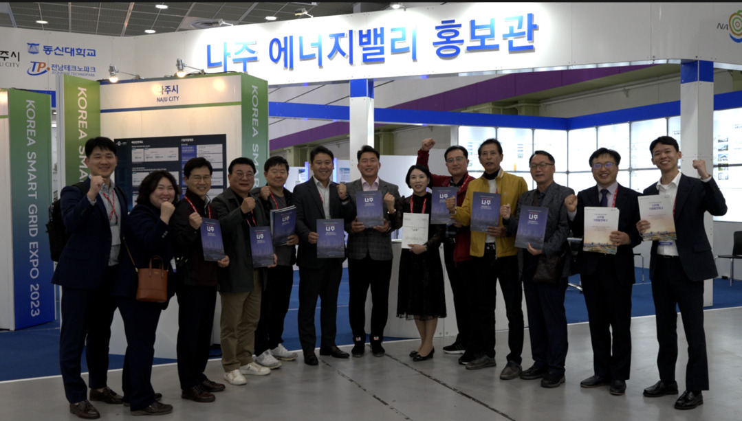 | ▲ 지난 18일 경제산업위원회 의원들이 서울 코엑스에서 개최된 ‘2023 수도권 투자유치 로드쇼’ 현장에서나주시가 운영하는 투자유치 상담 부스를 방문하고 기업투자유치 사항을 점검한 뒤 기념촬영을 하고 있다. [나주시의회 제공] |